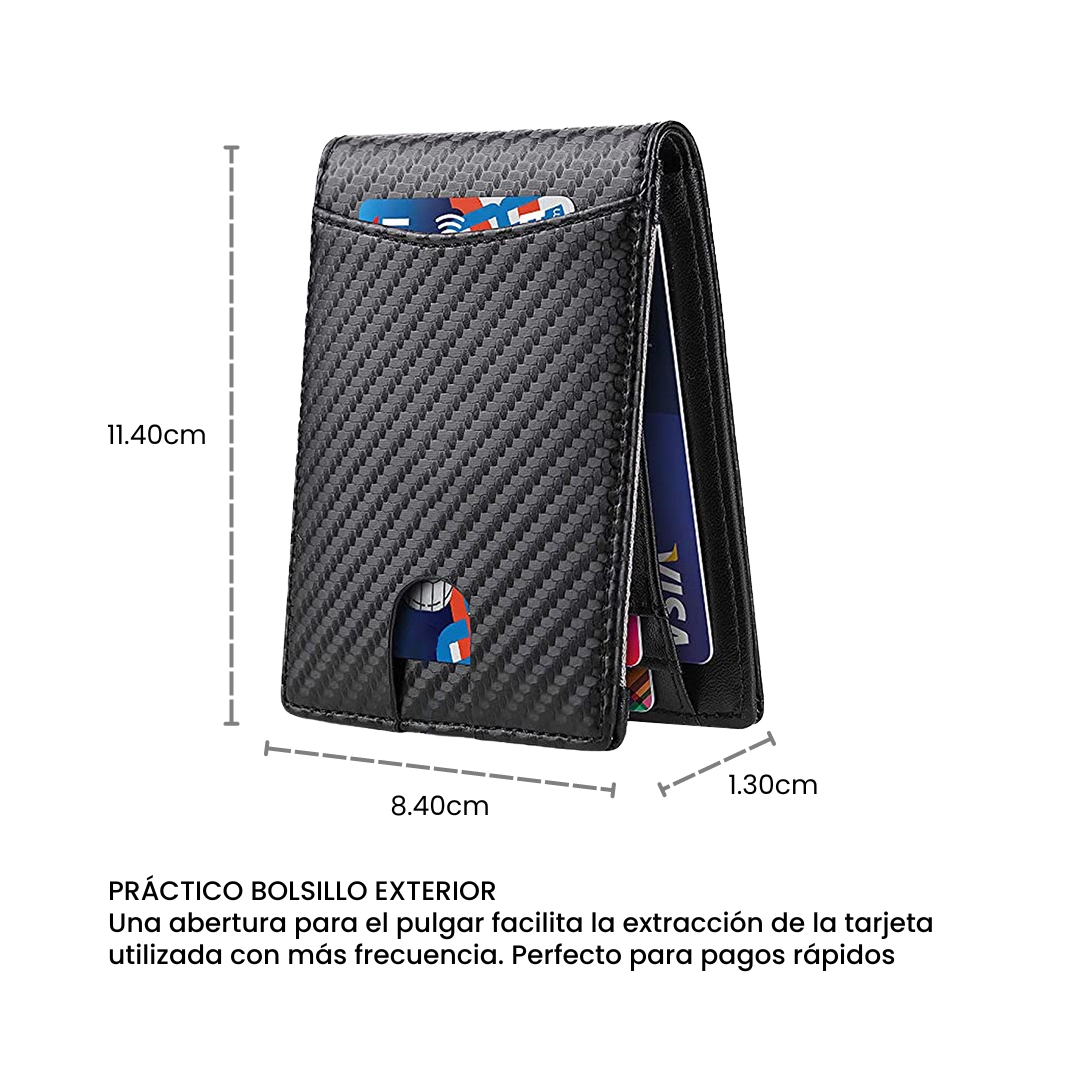-Durabilidad y Resistencia: Fabricada con material de cuerina resistente, esta billetera asegura una larga durabilidad y un aspecto impecable con el paso del tiempo.