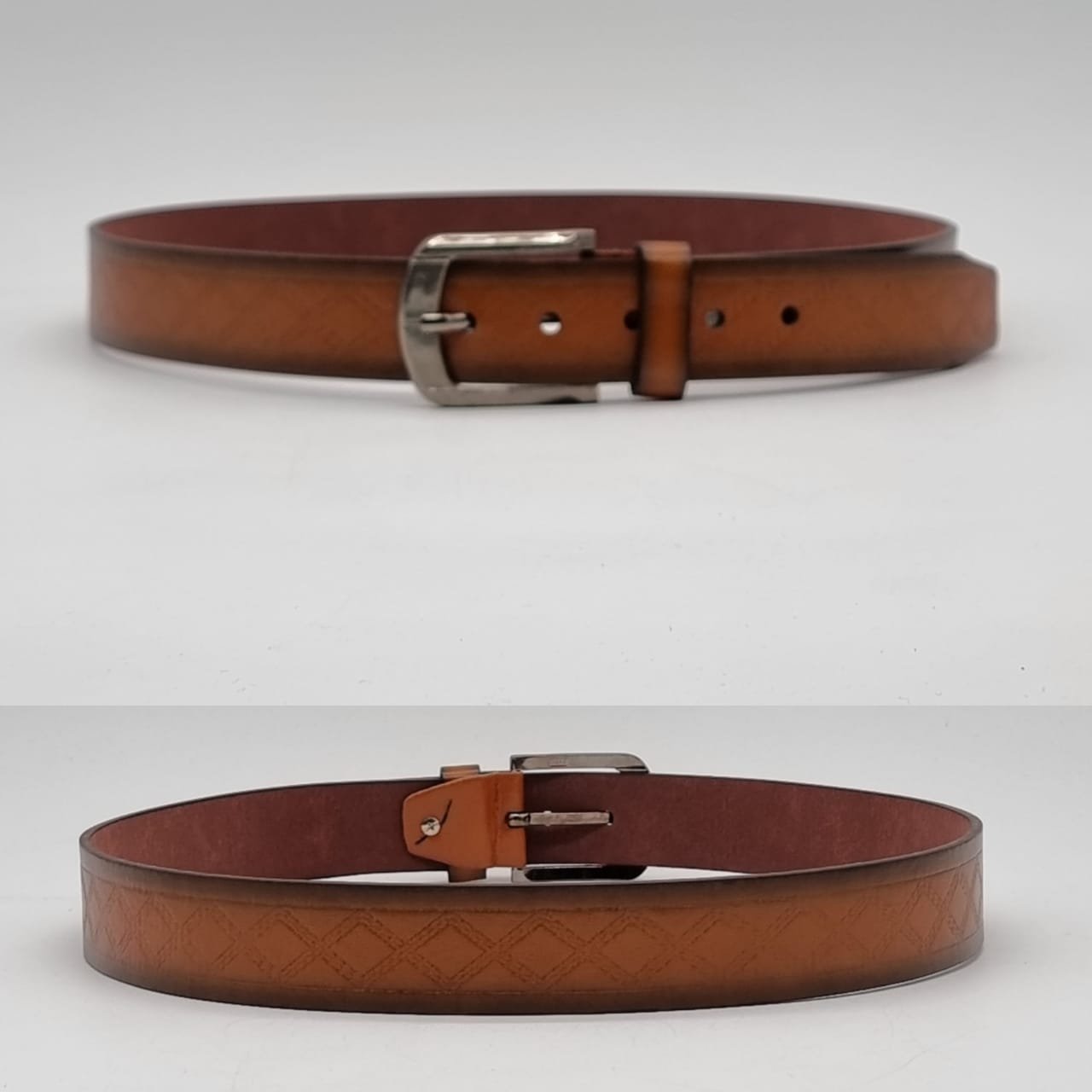Esta correa de cuero genuino con un distintivo diseño de rombo en alto relieve es la expresión perfecta de estilo, artesanía y elegancia para el hombre contemporáneo.