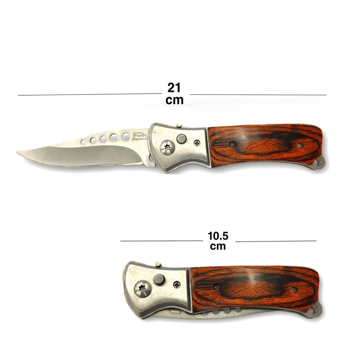 Experimenta la combinación perfecta de estilo y funcionalidad con nuestro cuchillo automático, diseñado con un mango de madera de 21 cm que ofrece un equilibrio excepcional y un manejo cómodo.