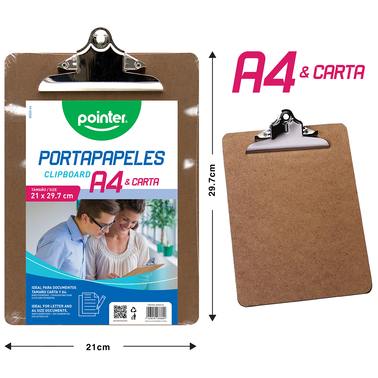 El Clipboard Porta Papeles Pointer es ideal para documentos de tamaño A4 y carta, ofreciendo versatilidad para diversas necesidades de presentación y organización.